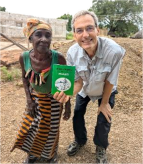 Our co-worker, Vincent, shows a young girl and her grandmother a literacy booklet we produced.